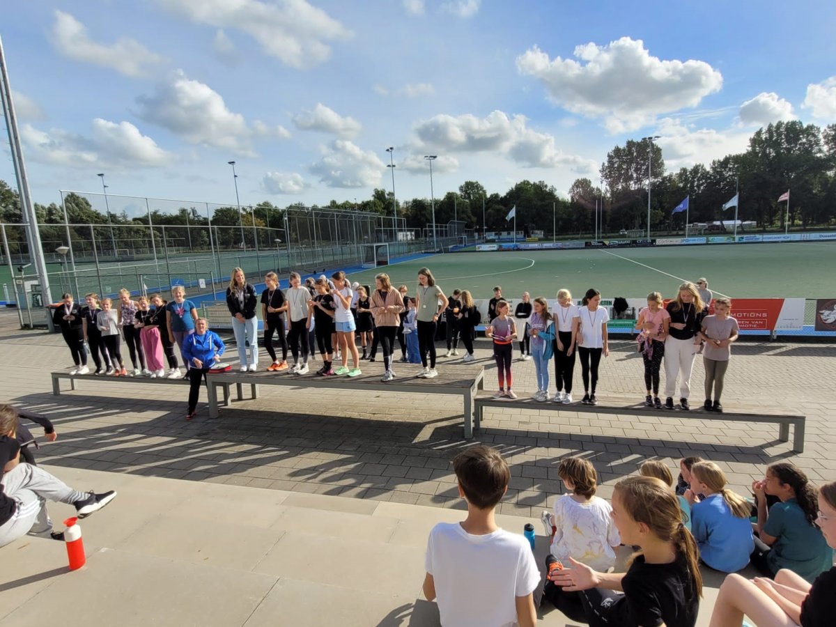 Voor de Murmellius Sport Games ging na veel regen uitgerekend op maandag 3 oktober de zon schijnen. Alle leerlingen uit klas 1 hebben heerlijk buiten kunnen sporten in gemixte teams onder de bezielende leiding van teamcoaches uit klas 5A. Er werden atletiekonderdelen gedaan en er werden wedstrijdjes gehandbald, gehockeyd en gevoetbald. Als afsluiting streden alle meidenteams tegen elkaar in een spannende estafette en tot slot ook de jongensteams. Prijswinnaars waren de snelste drie teams, die op eervolle wijze een mooie medaille omgehangen kregen van onze nieuwe rector mevrouw Vivi Tervoort!