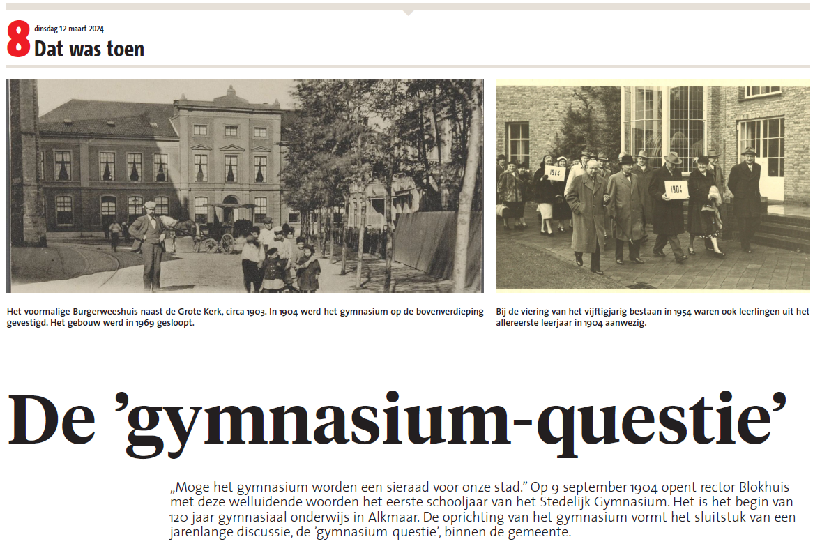In de bijlage het Noord Hollands Dagblad met een artikel over de oprichting van ons gymnasium, in het kader van het lustrum.