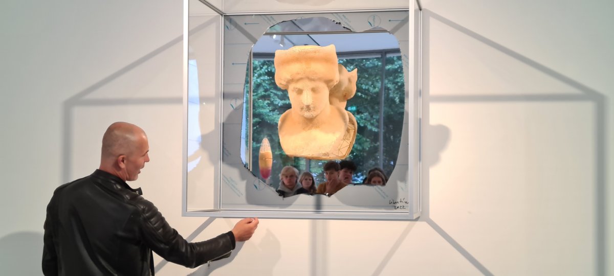 Het werk van deze van oorsprong Slowaakse kunstenaar is wereldwijd te zien in beroemde musea en richt zich op kunstwerken op het snijvlak van natuur en technologie. In museum Kranenburgh exposeert hij met sculpturen van honingraat in samenwerking met bijen. Onze leerlingen kregen de kans vragen te stellen tijdens een Q & A, door de kunstenaar zelf rondgeleid te worden en in korte tijd in samenwerking een eigen kunstwerk te maken vanuit de ideeën van Libertíny. Al met al een interessante en geslaagde ochtend.