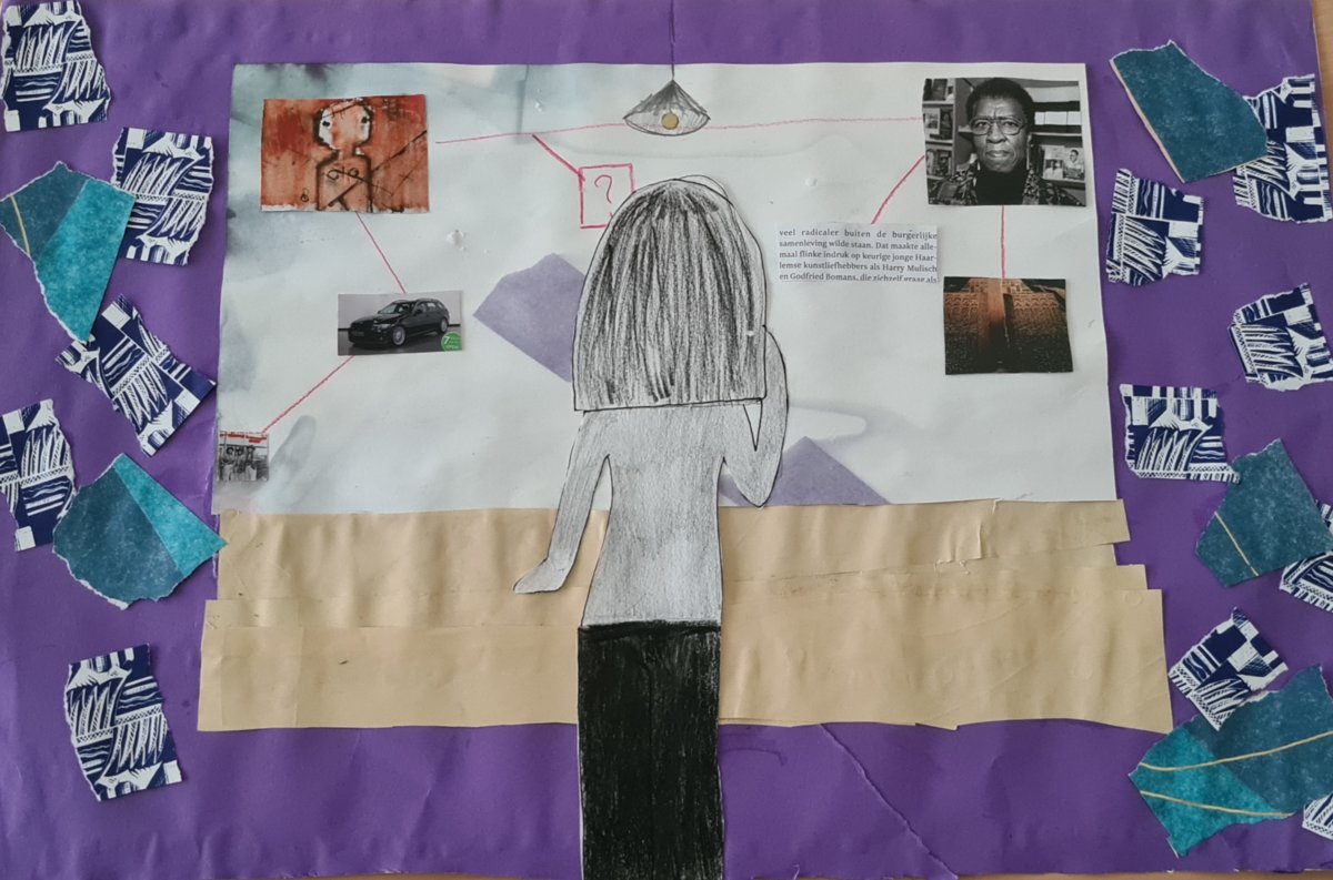 Met behulp van Mous' schrijftips schreven de tweedeklassers zelf een spannend verhaal(fragment). Ze schetsten het hoofdpersonage bij een workshop tekentechnieken en ontwierpen het decor door middel van een collage van stukken papier en stof. Van de eindresultaten worden prachtige klassenboeken gemaakt!