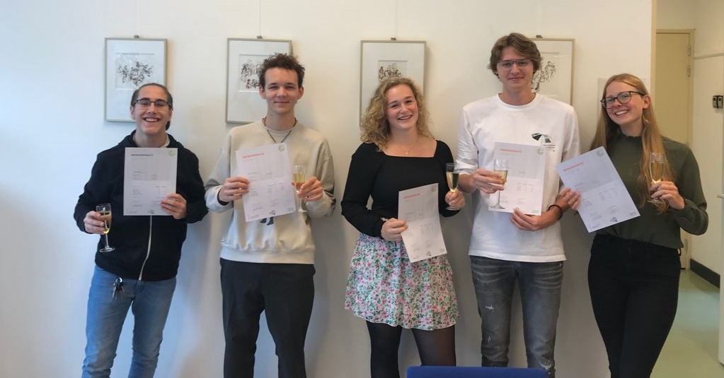 Afgelopen schooljaar hebben er weer meerdere leerlingen uit de (destijds) vijfde klas deelgenomen aan het Goethe-examen. Het Goethe-examen is een officieel Duits taalexamen dat overal ter wereld op zes verschillende niveaus (A1 tot C2) wordt afgenomen én erkend. Afgelopen jaar hebben Martijn van Gelder, Mauricio Hruṥka, Amber Kamp, Brent van Leenen en Emma Strikwerda het examen afgelegd – en met succes! Mauricio, Amber, Brent en Emma hebben hun B2-diploma gehaald, Martijn zelfs C1. De sectie is Duits is uiteraard