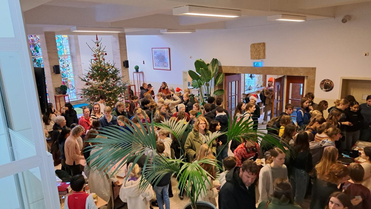 In het voorjaar ontstond het idee om een Goede Doelen Dag te organiseren. Leerlingen waren het snel eens over het doel waarvoor ze geld wilden inzamelen: de kindslachtoffers van de oorlog in Gaza. Het ideale moment hiervoor bleek de vrijdag voor de kerstvakantie. Zo gezegd, zo gedaan. Met een team van leerlingen uit verschillende jaarlagen is onder leiding van mw. Zoetmulder gebrainstormd en uiteindelijk lag er een mooi plan dat leidde tot een geslaagde Kerstmarkt met zelfgebakken heerlijkheden, tweedehands boeken en spelletjes, zelfgemaakte Kerstversieringen etc. Veel leerlingen bleken bereid om hun steentje bij te dragen: ze bakten popcorn, draaiden suikerspinnen, kochten lootjes en hadden er graag geld voor over om hun docenten met slagroom te bekogelen. Ook ouders, grootouders en andere belangstellenden waren uitgenodigd en kwamen in grote getale.